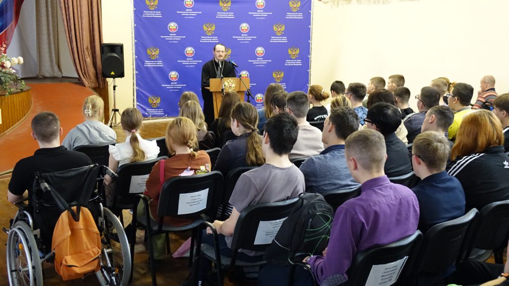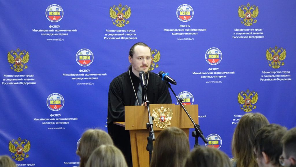 29 января на базе федерального казённого профессионального образовательного учреждения «Михайловский экономический колледж — интернат» в рамках реализации духовно — просветительского проекта «Русский ковчег» состоялась лекция старшего преподавателя Сретенской духовной академии иеромонаха Илиодора (Шевчука).
